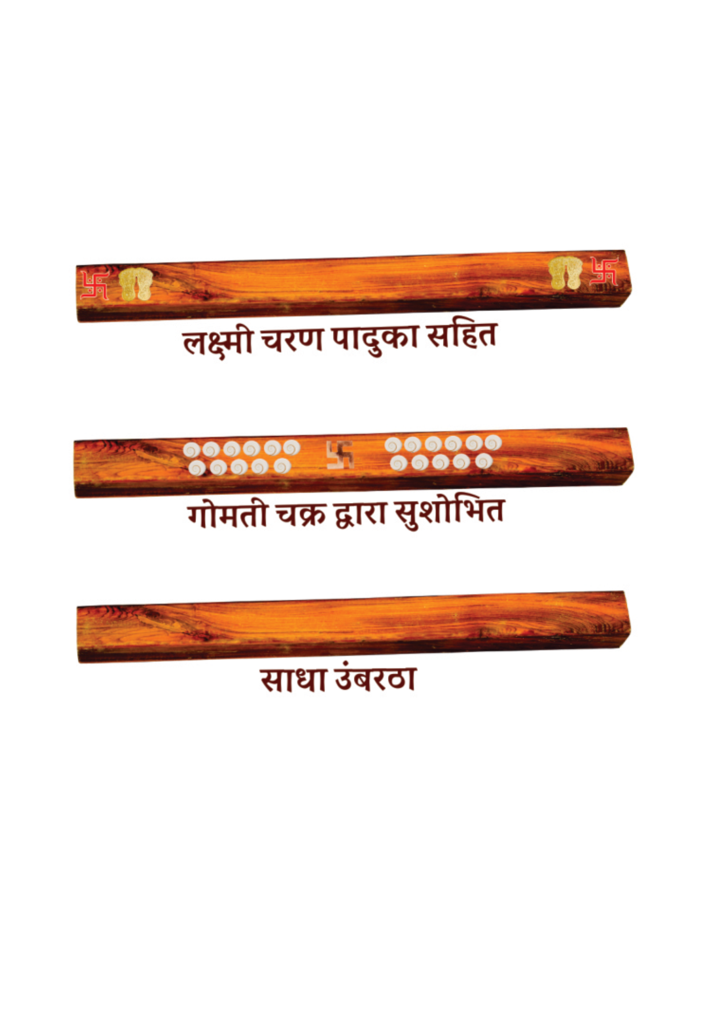 ‘Umbartha’, commonly called as ‘Umbara’ or a doorway is made of wood. It is given a very scared importance in the holy books of Sthapathya Ved. It is fixed on the floor between the main entrance and the door frame. We offer our customers the Umbartha (doorway)made of sacred wood and embedded with the precious gems according to Sthapathya Ved. The product is customized according to the size and other requirement of the door. Using such Umbartha enhances the positivity of the main door.